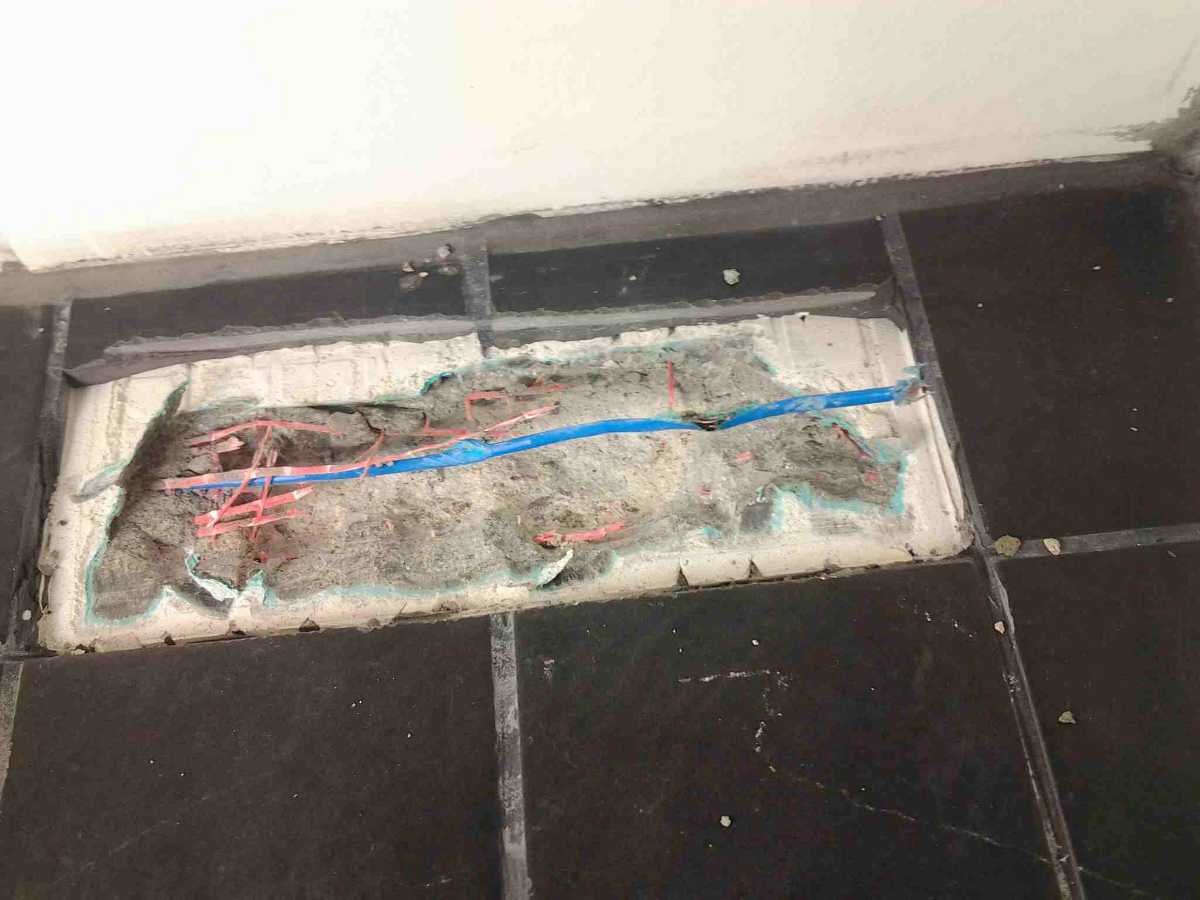 Katso video lattialämmitysvian etsinnästä kylpyhuoneen lattiasta.Kuva suurenee klikkaamalla sitä